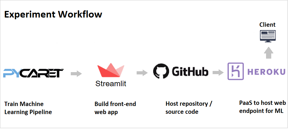 This tutorial will cover the entire workflow starting from training a machine learning model and developing a pipeline in Python, developing a simple web app using streamlit and deploying the app on the Heroku cloud platform.