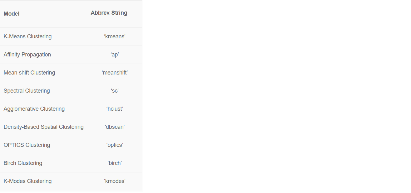 There are over 8 ready-to-use clustering algorithms available in PyCaret.
