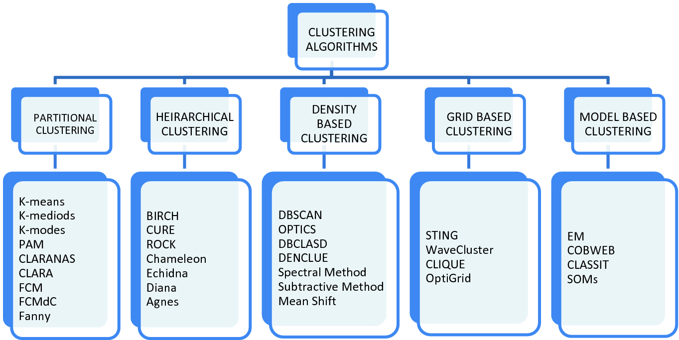Given the subjective nature of clustering tasks, there are various algorithms that suit different types of problems. Each algorithm has its own rules and the mathematics behind how clusters are calculated.