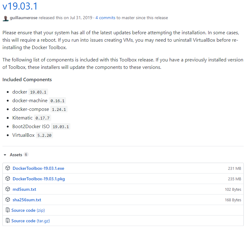 However, if you are using Windows 10 Home, you would need to install the last release of legacy Docker Toolbox (v19.03.1) from Dockers GitHub page.