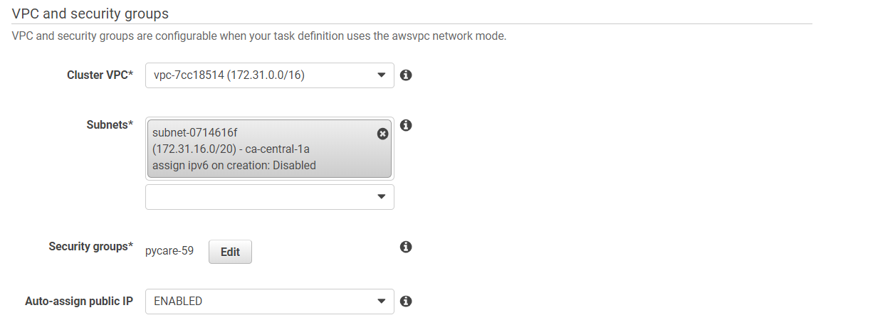 (b) Select the VPC and Subnet from the dropdown: