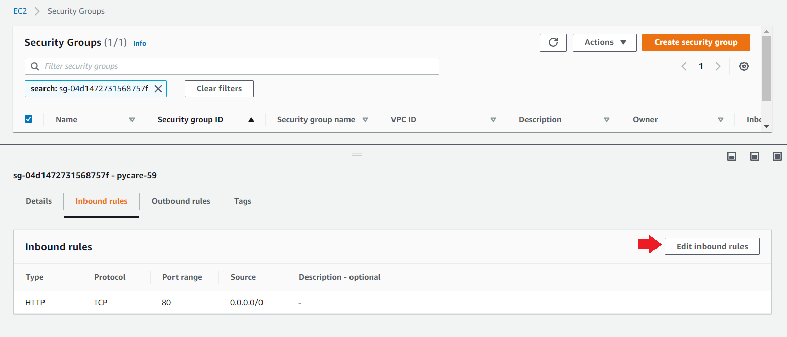 (d) Click on “Edit inbound rules”
