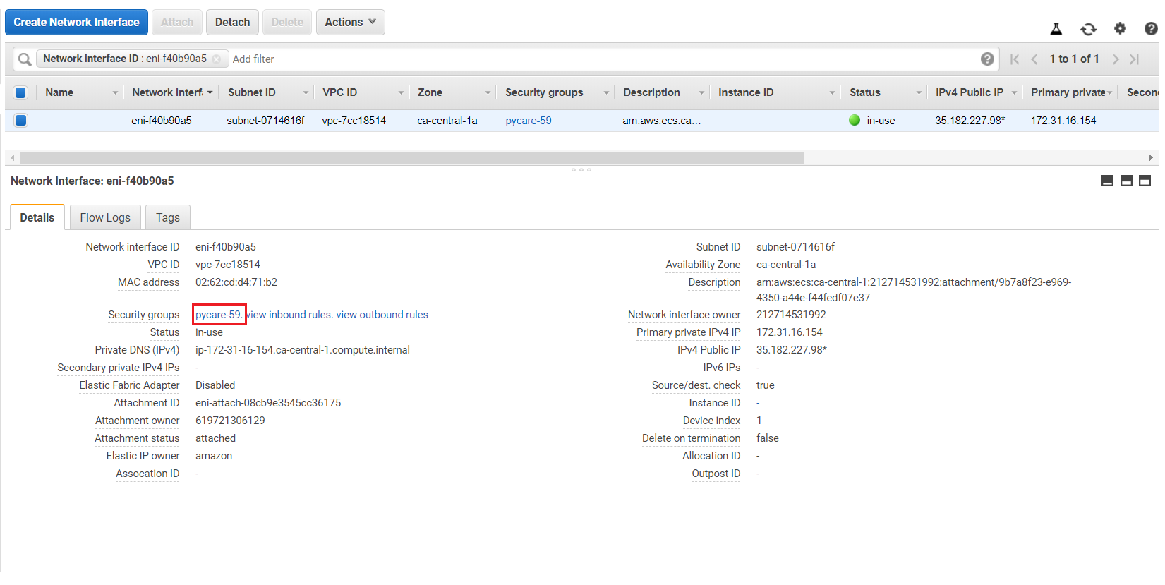 (c) Click on Security groups