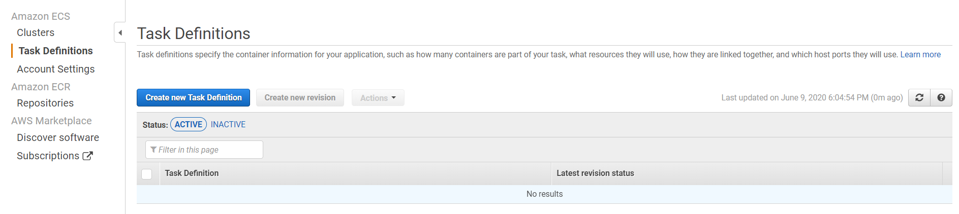 (a) Click on “Create new task definition”:
