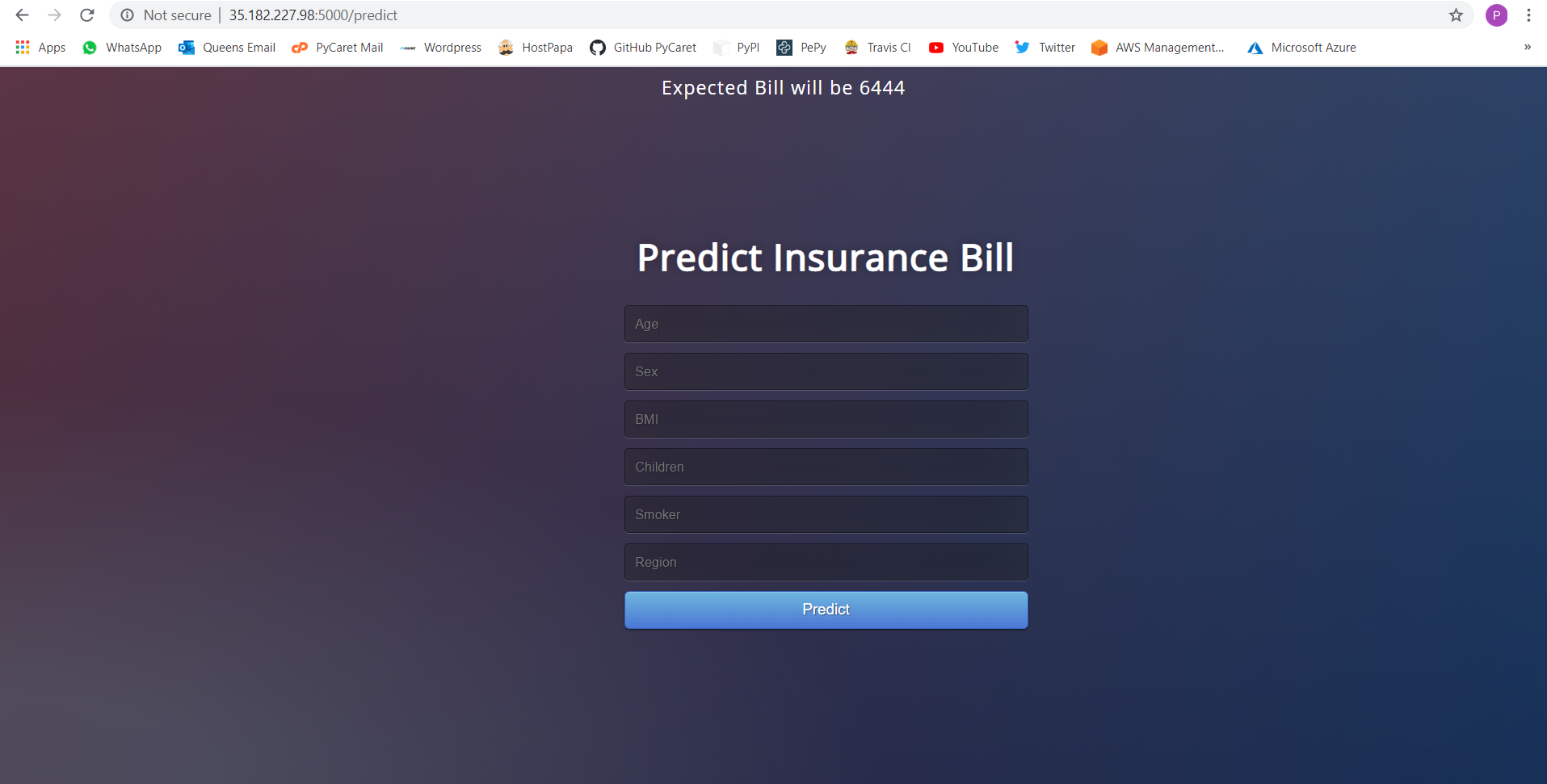 To build and deploy a web application where the demographic and health information of a patient is entered into a web-based form which then outputs a predicted charge amount.