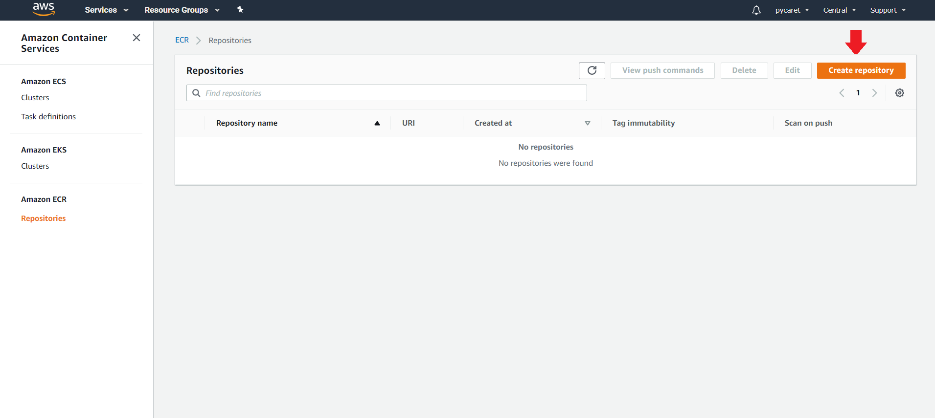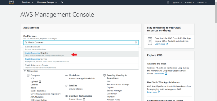 (a) Login to your AWS console and search for Elastic Container Registry: