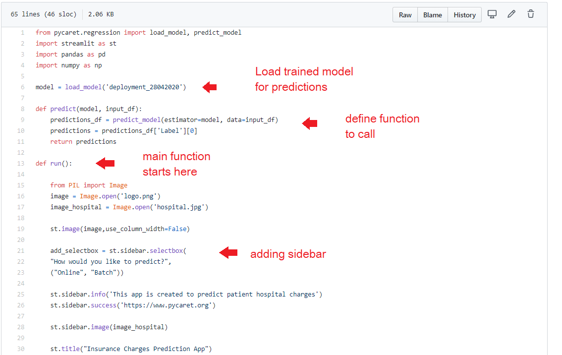 This section imports libraries, loads the trained model and creates a basic layout with a logo on top, a jpg image and a dropdown menu on the sidebar to toggle between ‘Online’ and ‘Batch’ prediction.