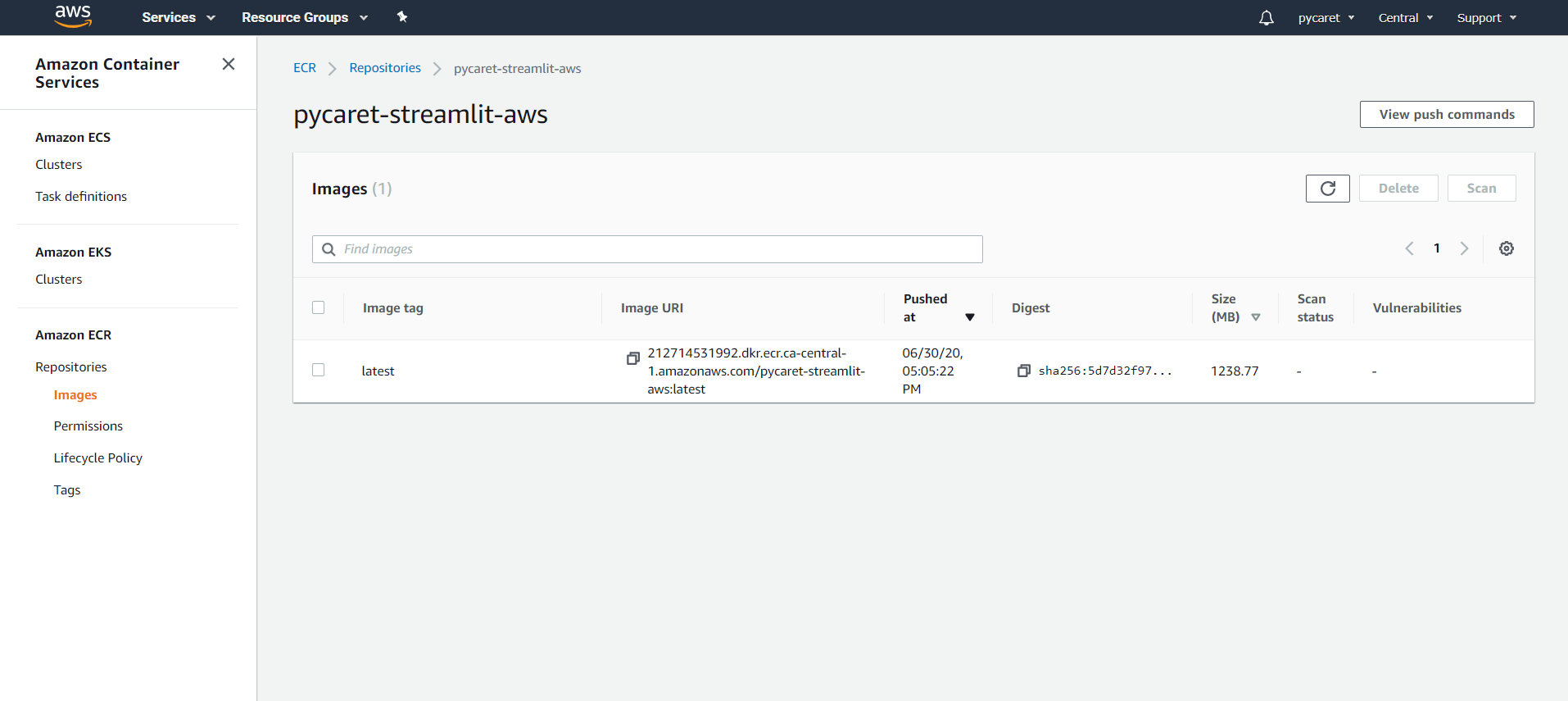 Click on the repository you created and you will see an image URI of the uploaded image in the step above. Copy the image URI (it would be needed in step 6 below).