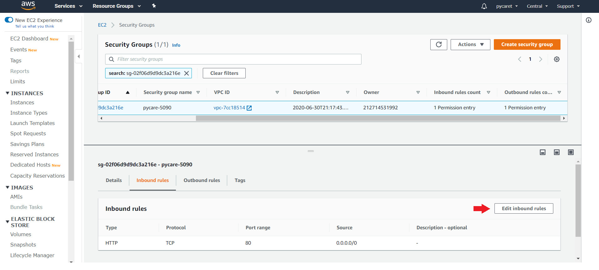 One last step before we can see our application in action on Public IP address is to allow port 8501 (used by streamlit) by creating a new rule. In order to do that, follow these steps: