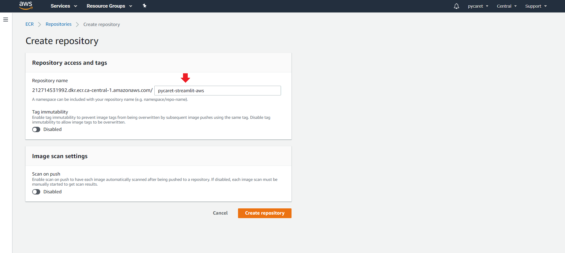 (a) Login to your AWS console and search for Elastic Container Registry: