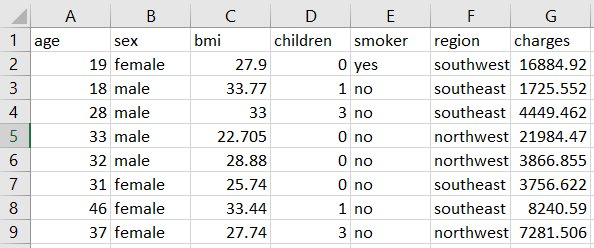 For this tutorial, I am using a regression dataset from PyCaret’s repository called insurance. You can download the data from here.