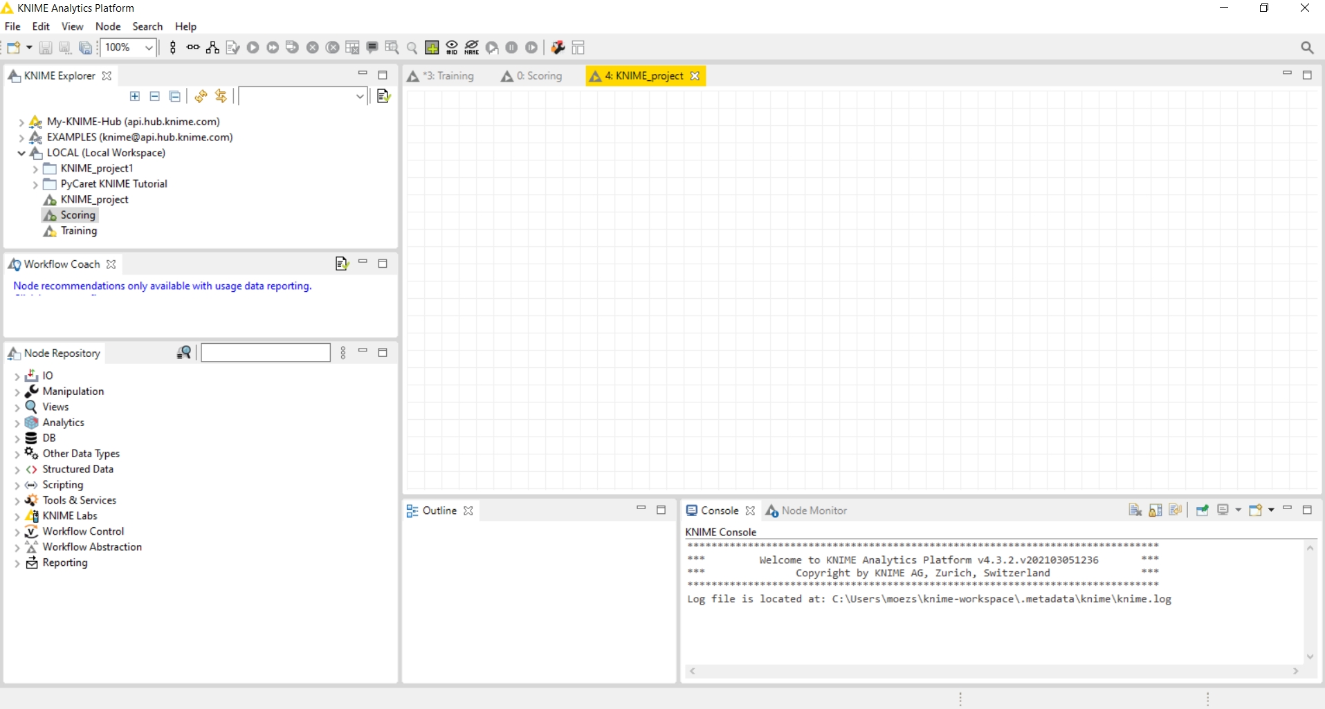 Click on “New KNIME Workflow” and a blank canvas will open.