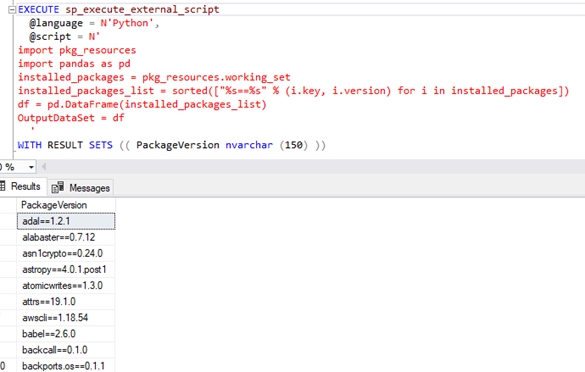 WITH RESULT SETS (( PackageVersion nvarchar (150) ))
