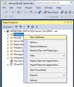 In the Object Explorer panel, right-click on Databases, and choose New Database