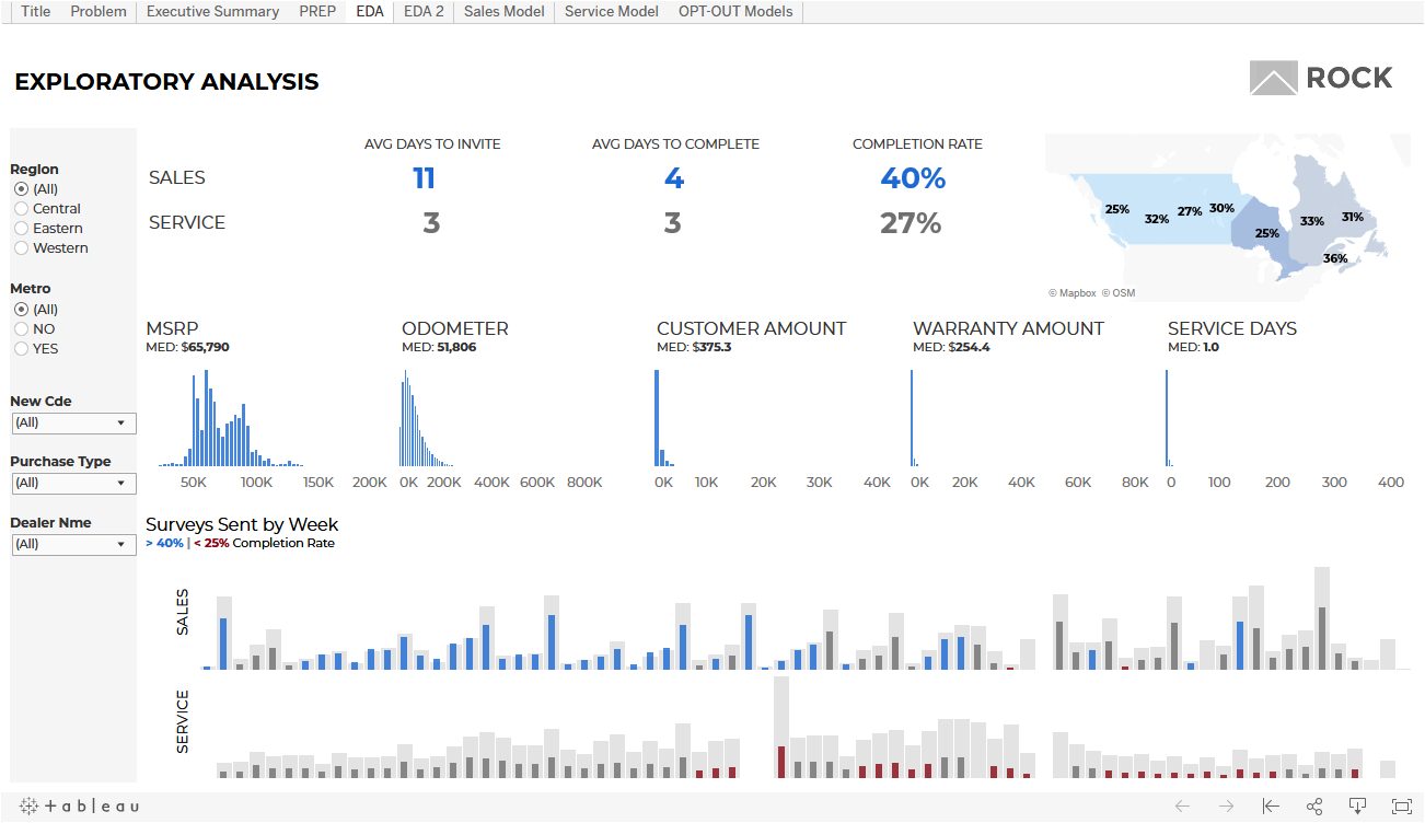 By using PyCaret and Tableau, the business can quickly setup reporting products that continuously generate predictive views using existing software and minimal up front development time.