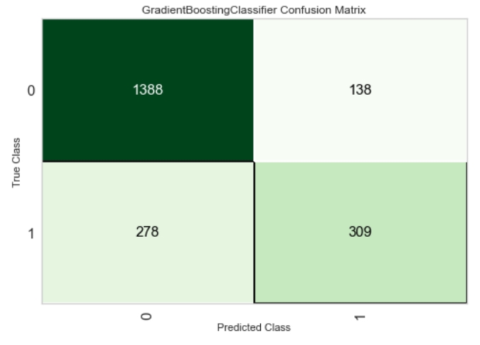 1,388 (66%) are True Negatives (good customers) and 278 (13%) are False Negative (this is a missed opportunity).