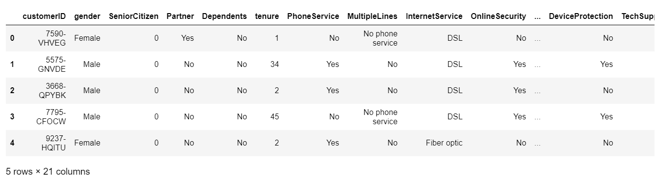 For this tutorial, I am using a Telecom Customer Churn dataset from Kaggle. The dataset already contains the target column that we can use as is. You can read this dataset directly from this GitHub link. (Shoutout to srees1988)