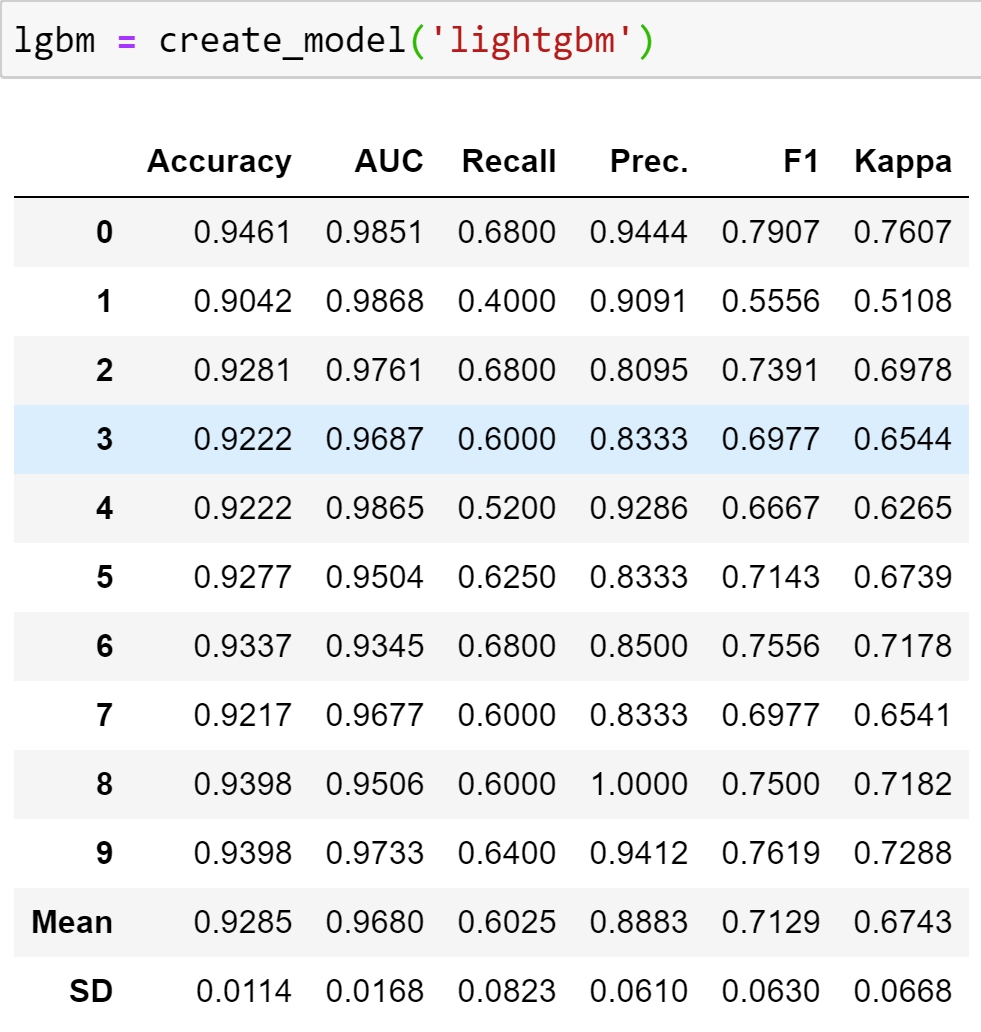 To evaluate the set of all the models, we will run the *compare_models() *command with turbo set to False because I want to evaluate all the models currently available in the library.