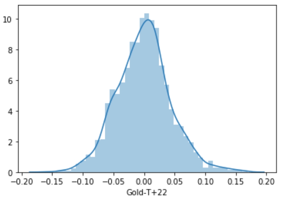 Now, based on the above z-value and Mean and SD of returns for each window, we will get threshold return levels. The forward returns for 14 Day and 22 Day period are in columns “Gold-T+14” and “Gold-T+22” in the ‘data’.