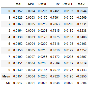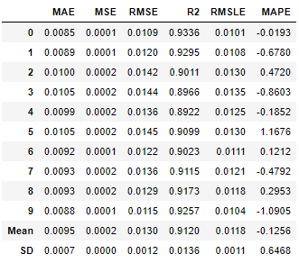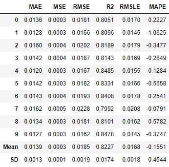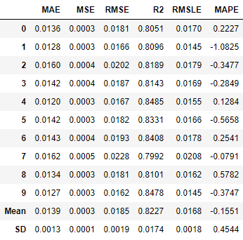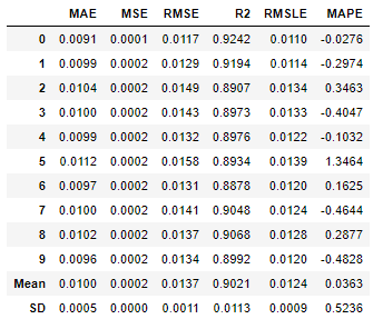 The mean R2 of 90.2% imply that our model is able to capture on an average 90.2% of the variation in Gold returns from the features we have provided.