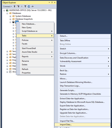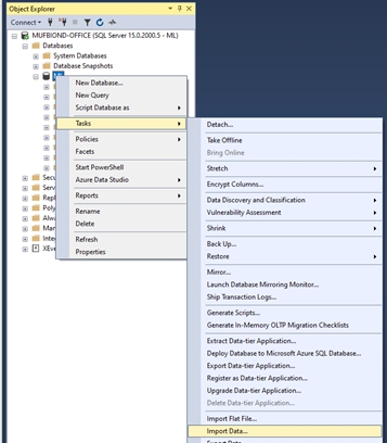Right-click the database and select Tasks -> Import Data
