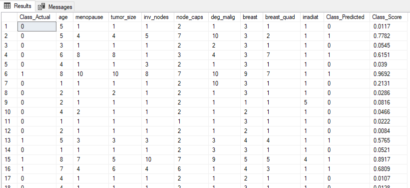 iii. Call pycaret_predict_cancer procedure to save predictions result into a table