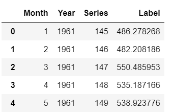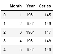 Now that we have trained our model on the entire dataset (1949 to 1960), let’s predict five years out in the future through 1964. To use our final model to generate future predictions, we first need to create a dataset consisting of the Month, Year, Series column on the future dates.